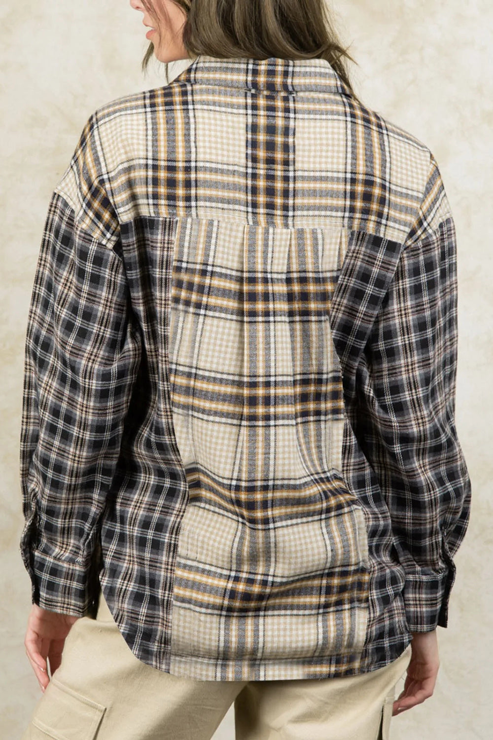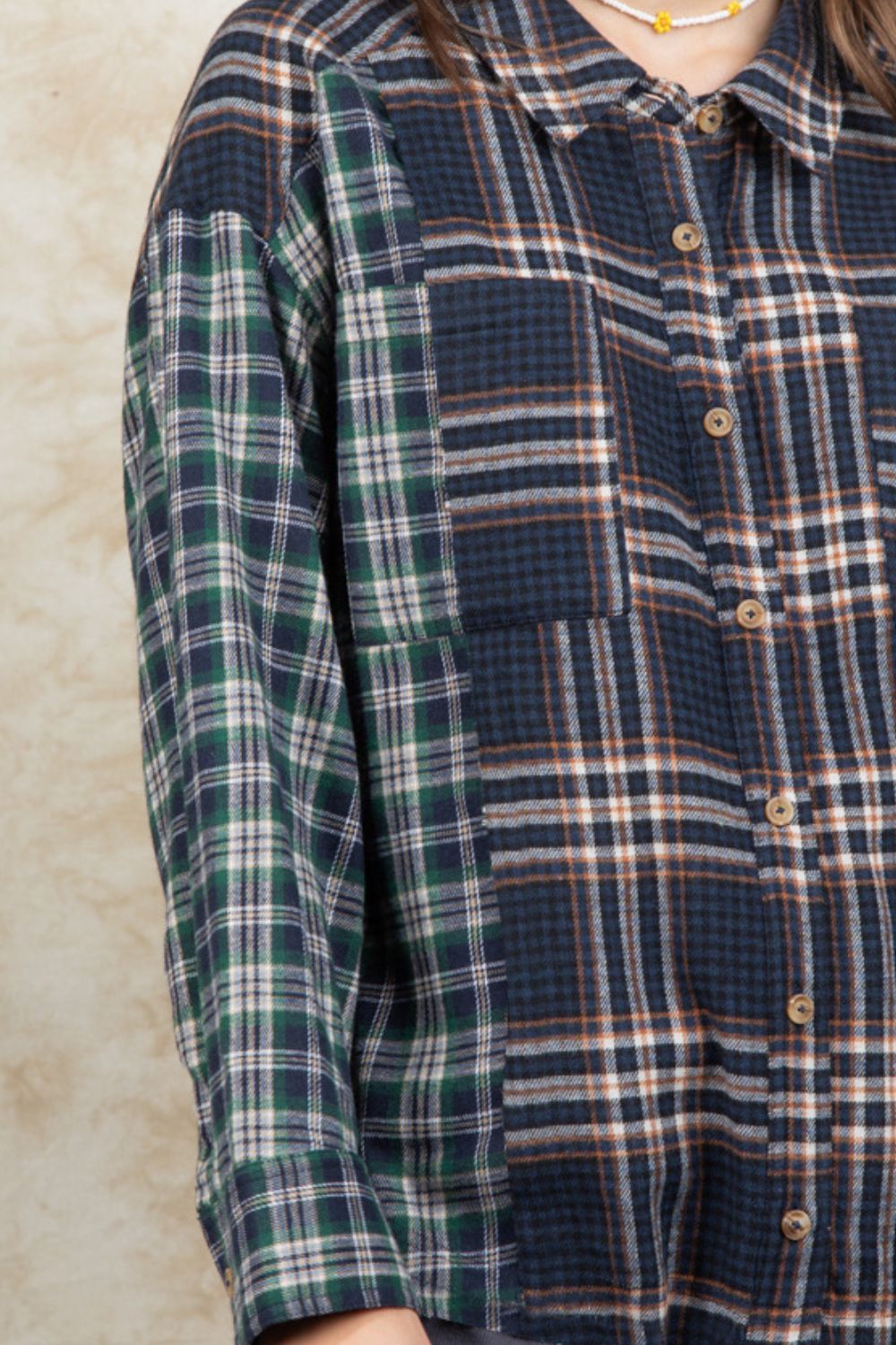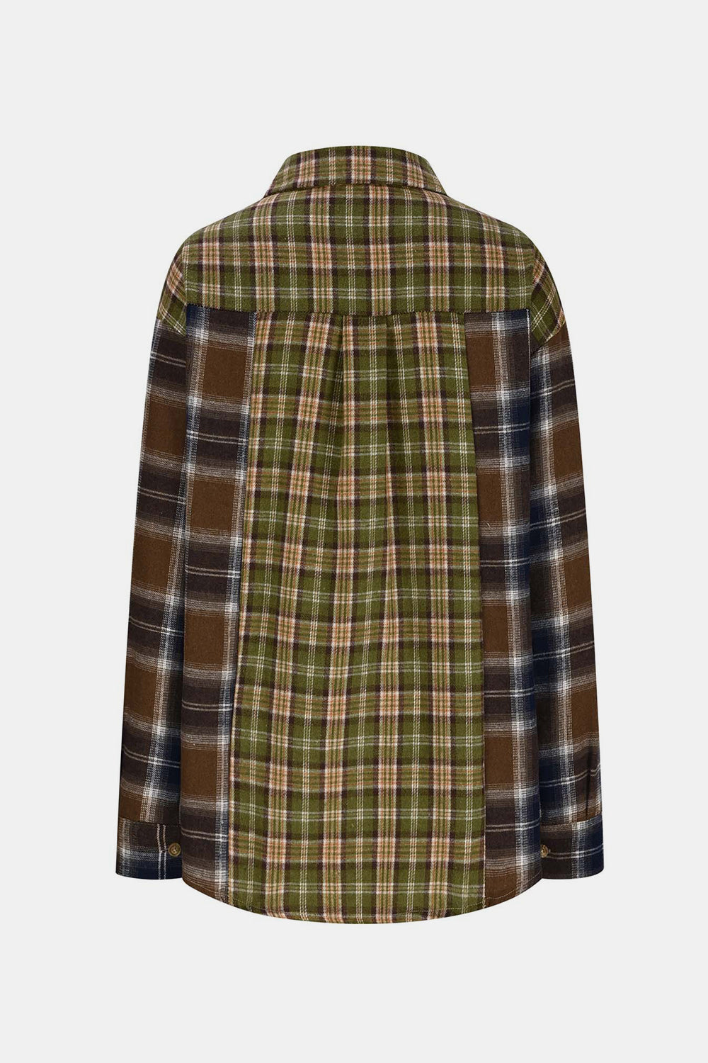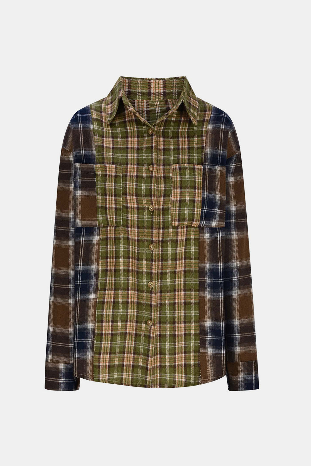 Plaid Collared Neck Button Up Long Sleeve Shirt