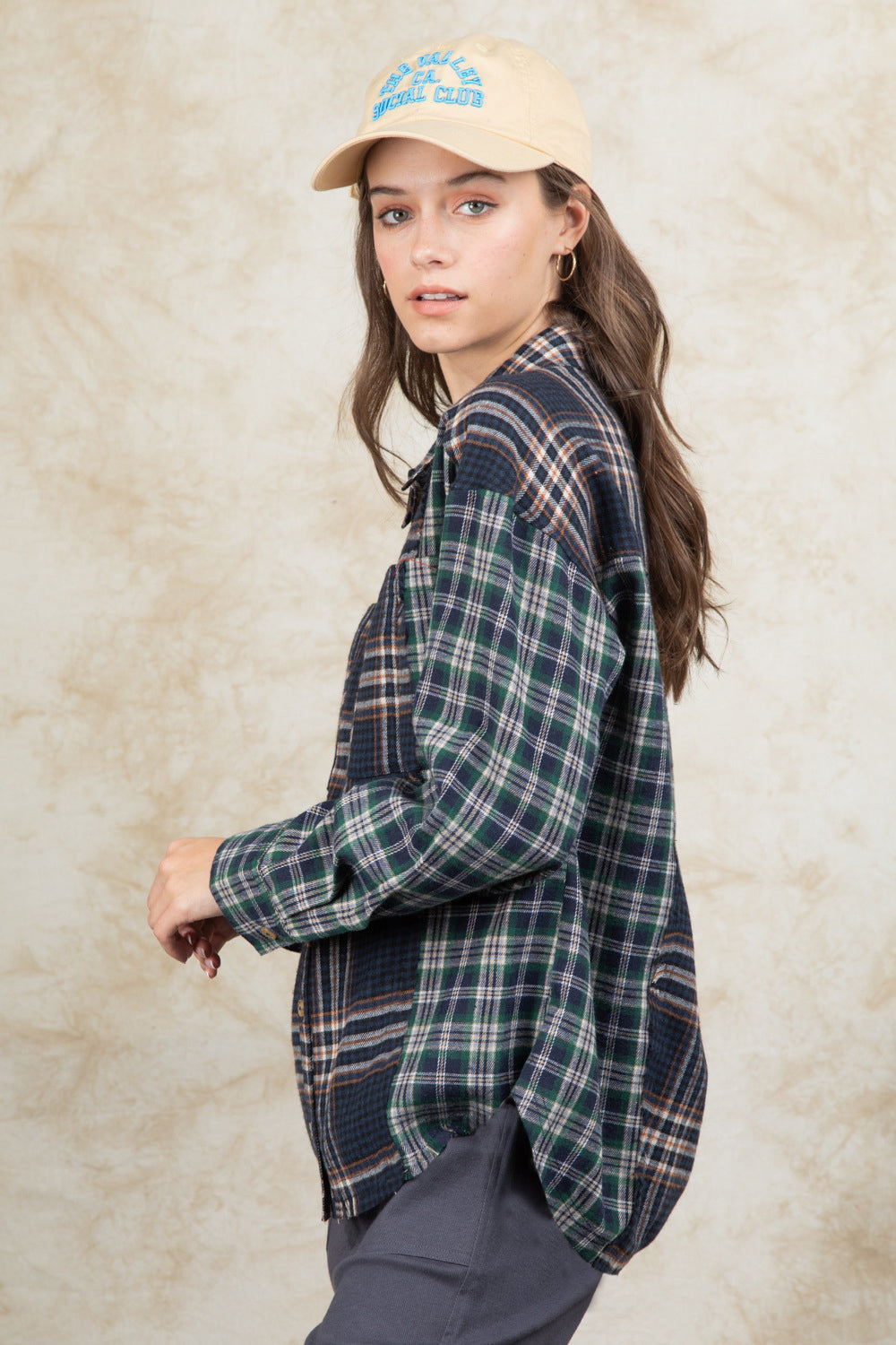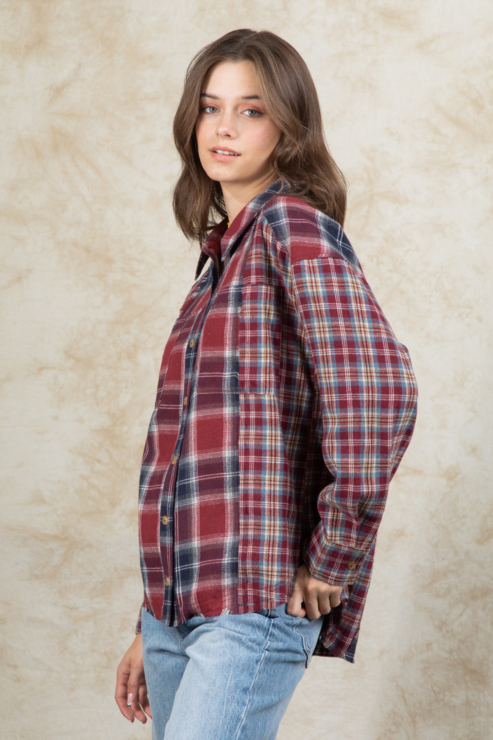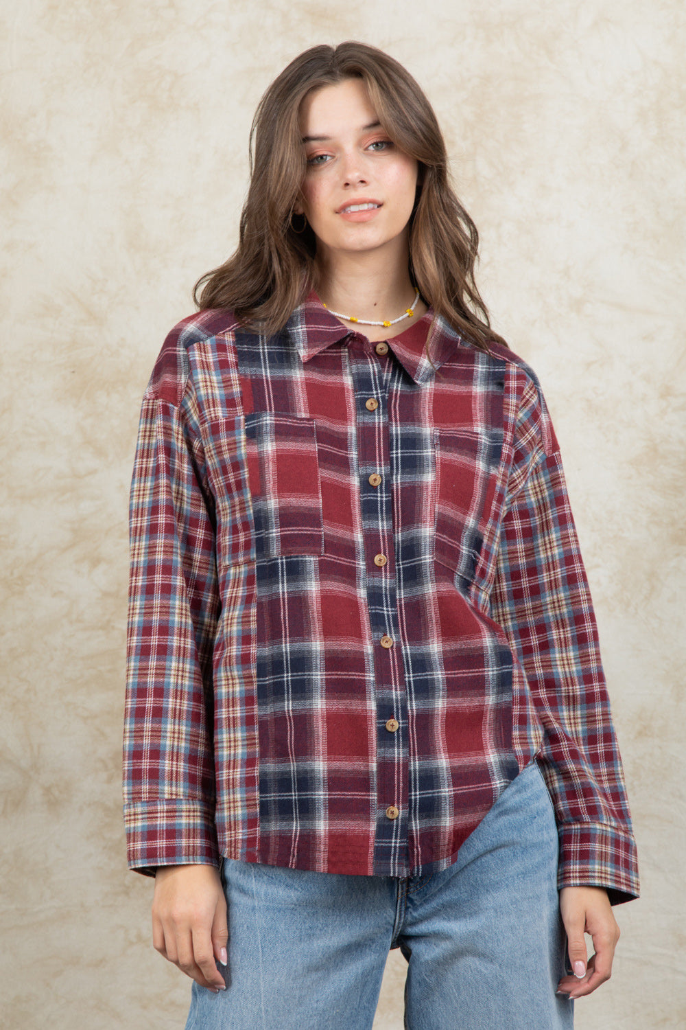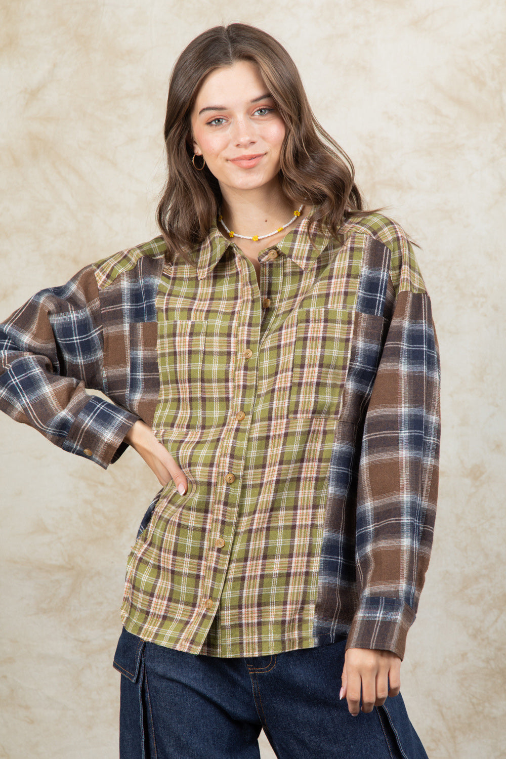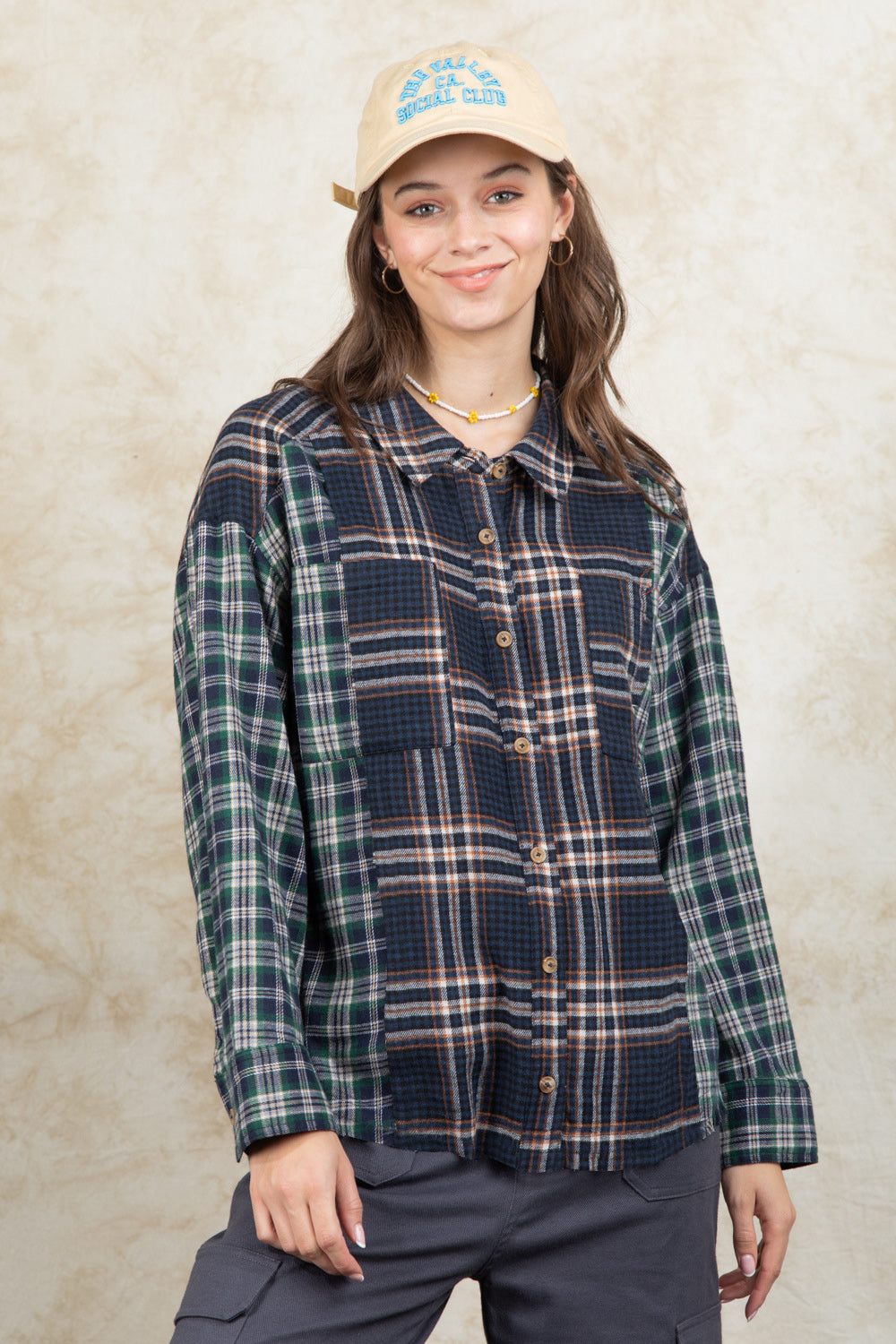 Plaid Collared Neck Button Up Long Sleeve Shirt
