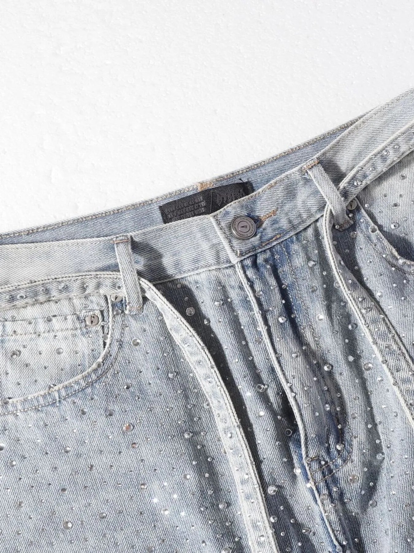 Men's Rhinestone Embellished Wash Relaxed Fit Jeans