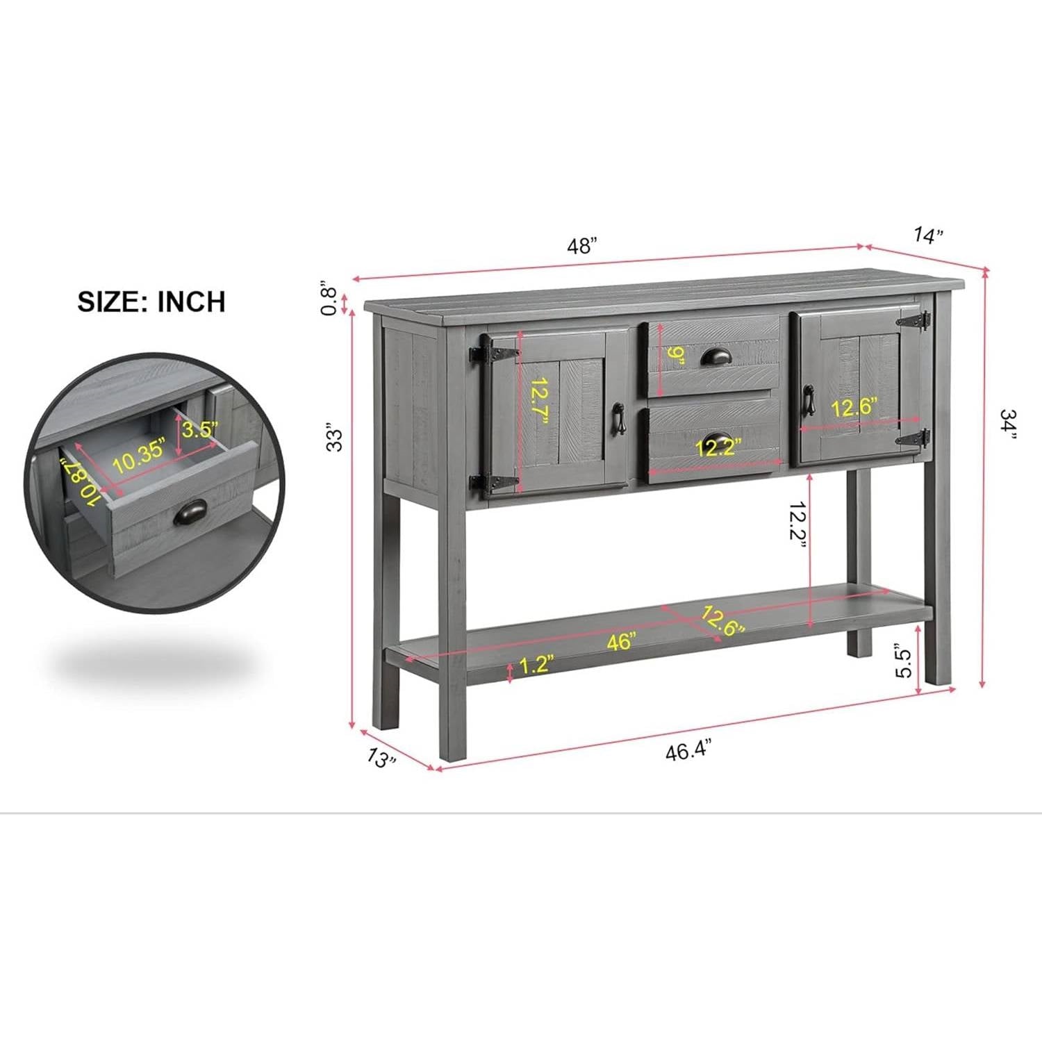 The console table 48 '' L* 14 '' W*34'' H .Solid Wood Sideboard Console Table features a retro design that adds a touch of vintage charm to your foyer, entryway, or dining room. Its classic aesthetic enhances the overall ambiance of your space.