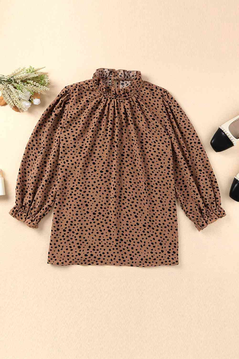 Animal Print Ruffle Collar Flounce Sleeve Blouse
